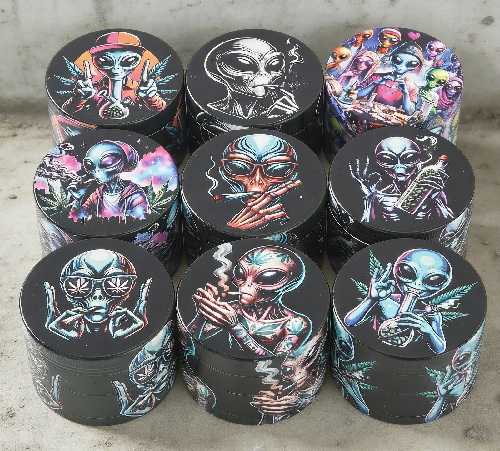2.5″ 4 layer metal grinder full printing alien